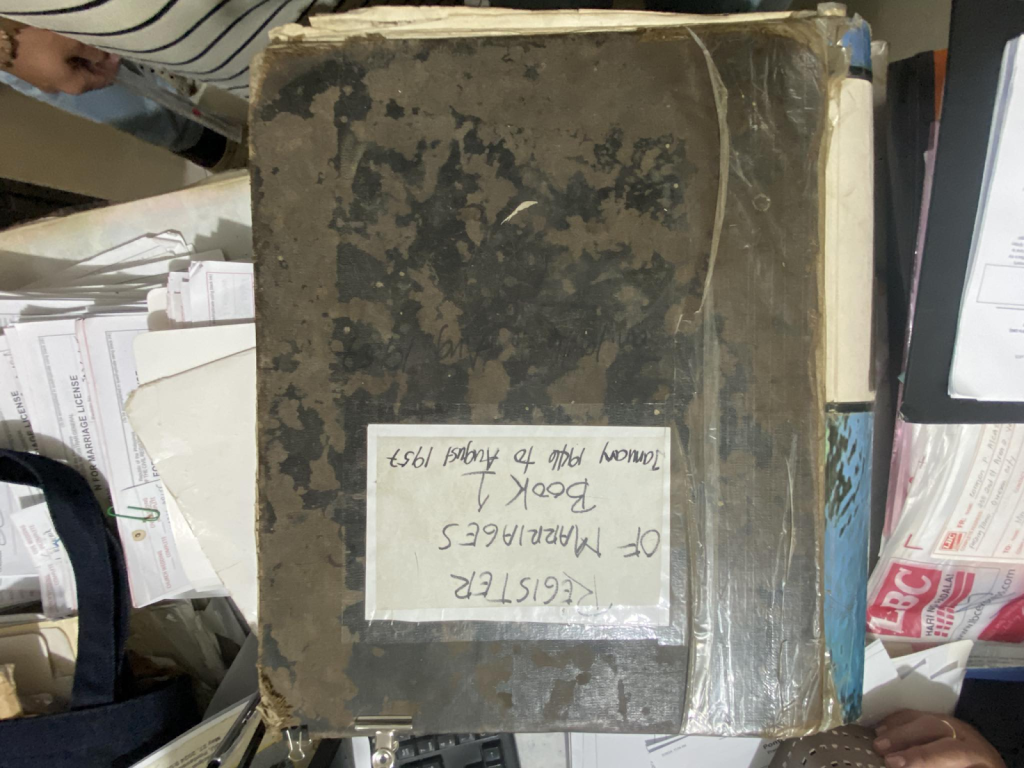 1946-1957 marriage records, deteriorated paper records, digital tracking system records, disaster-affected documents, flood recovery documents, genealogical reference Philippines, genealogical research resource, government record preservation, government-issued marriage documentation, historical family records, historical marriage records, legal proof of marriage, local government restoration, marriage record digitization, marriage register conservation, Philippine marriage archives, Pontevedra marriage register, secure archival storage, surviving flood-damaged records, torn and folded records, yellowed brittle pages