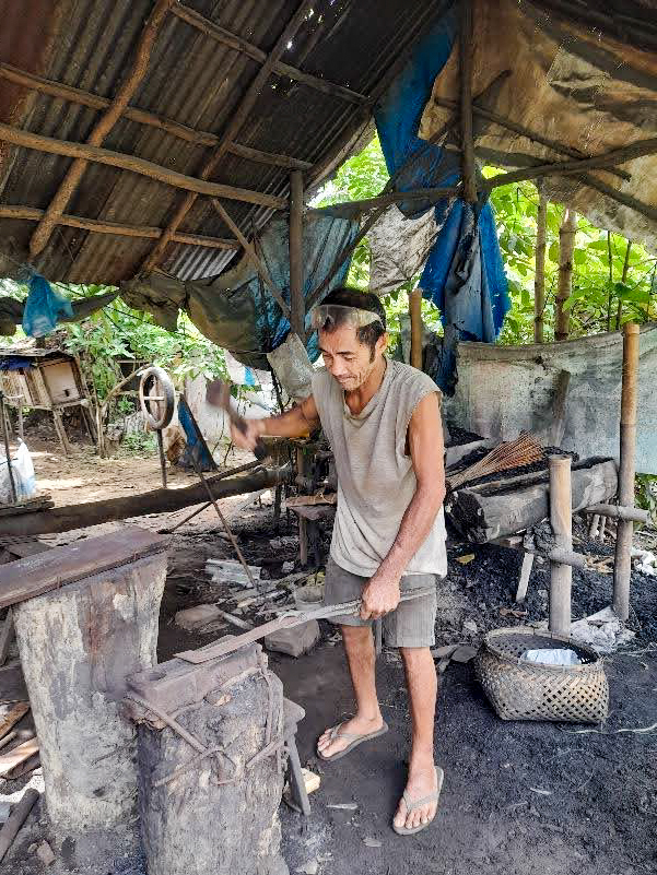 Pagpamanday, or blacksmithing, is a traditional craft practiced in Barangay Lanipe, Nueva Valencia, Guimaras, passed down through generations. The process involves using scrap materials, typically from jeepney muelle, which are heated, shaped, and sharpened into tools like binangon, knives, and plows. Blacksmiths, or manugpamanday, use an anvil, hammer, and sanding machine to shape the material, grinding and polishing it, before quenching it in water to ensure durability. The craft is a significant source of livelihood for local families and is actively practiced by men typically aged 30-65 in the community. Knowledge of blacksmithing is transmitted informally through apprenticeships, where younger family members learn from their elders. Despite challenges like the cost of materials, including scrap metal and charcoal, the craft remains a vital part of the cultural heritage and the local economy of Nueva Valencia.