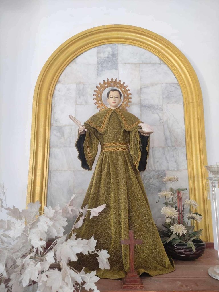 The San Nicolas de Tolentino sculpture, estimated to be created in the early 1960s and now over 60 years old, is a significant religious artifact under the care of the Iglesia Filipina Independiente in Ajuy, Iloilo. Measuring 3 feet in total height, the sculpture plays a central role during the annual fiesta on September 10th, serving as a symbol of devotion and community identity. Under the care of Mrs. Bonilla, the sculpture has been passed down through generations, linking familial heritage with spiritual tradition. Despite being kept from public view for confidentiality reasons, the sculpture remains a powerful emblem of local faith, attracting devotees from nearby towns. Currently, the sculpture faces threats from fading, moisture, termites, and environmental exposure, with only regular cleaning as its primary conservation measure.