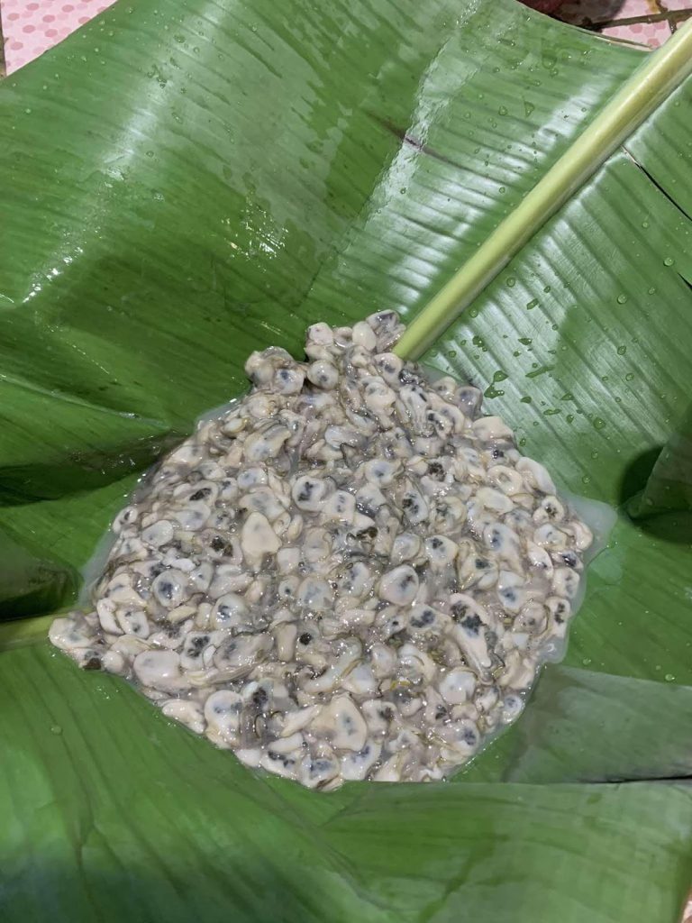 Tinuob nga Sisi is a traditional dish from Ajuy, Iloilo, rooted in its cultural relevance and the community’s fishing heritage. It is made by wrapping Sisi (a type of shellfish) in banana leaves, along with salt, sugar, lemongrass, and ginger, then steaming or grilling it for a few minutes. This dish has long served as an affordable nourishing meal for low-income families, especially during hard times, and it remains popular today. However, threats such as habitat destruction, climate change, over-harvesting, and the gradual loss of traditional knowledge pose risks to its survival. Local efforts such as non-formal education and the inclusion of Tinuob nga Sisi in Ajuy’s town fiesta help sustain and celebrate this culinary heritage.